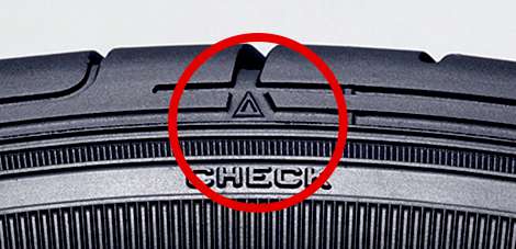 スリップサインの位置は、タイヤの両サイドの周上に4カ所以上設けられている「▲」印で示されています。
