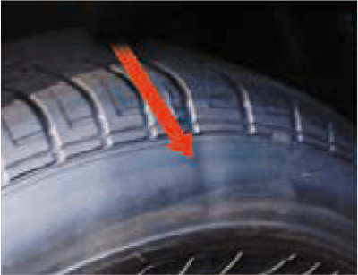縁石などにタイヤ側面が接触して気づかないうちにキズなどが発生していることがあります。