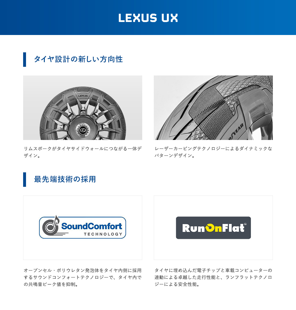 タイヤに埋め込んだ電子チップと車載コンピューターの連動による卓越した走行性能と、ランフラットテクノロジーによる安全性能。