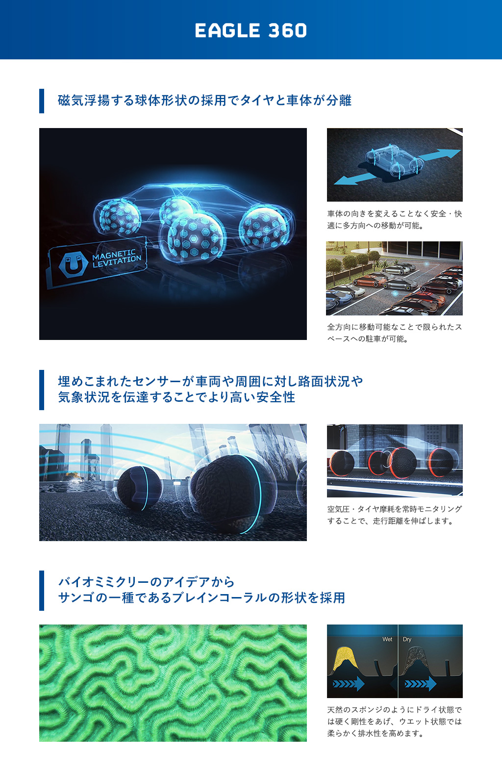 先進センサー技術および専用設計のトレッドにより、路面状況及び気象状況を感知。