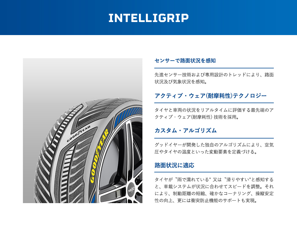 タイヤと車両の状況をリアルタイムに評価する最先端のアクティブ・ウェア(耐摩耗性) 技術を採用。