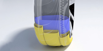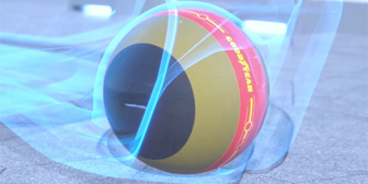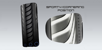 3つのエアチャンバーをコーナーリングに合わせ円錐状にし、路面との接地面を最適化しハンドリング向上。