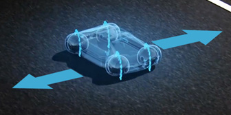 タイヤが«雨で濡れている”又は«滑りやすい”と感知すると、車載システムが状況に合わせてスピードを調整。それにより、制動距離の短縮、確かなコーナリング、操縦安定性の向上、更には衝突防止機能のサポートも実現。