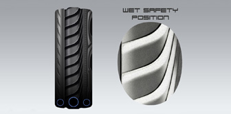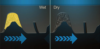 ウエット路面では«くぼみ»を増やし高い排水性を実現。